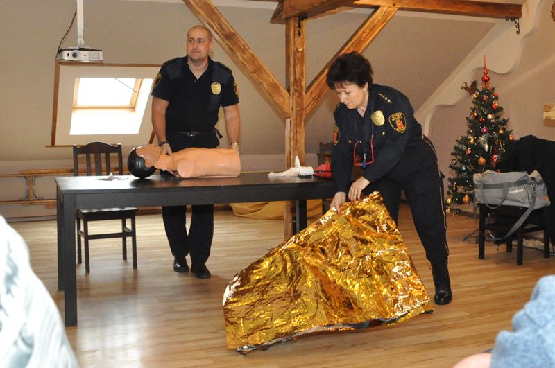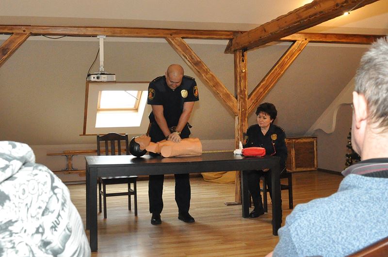 W kolejnych etapach funkcjonariusze pokazali jak powinno się postępować z osobami, które zemdlały, doznały ataku padaczki, zakrztusiły się bądź zadławiły lub doznały urazów. Niektórzy z uczestników szkolenia podawali przykłady zdarzeń, których byli świadkami.