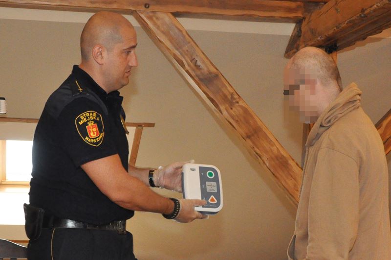 2018 02 szkolenie bezdomnych 7Strażnicy miejscy od dawna prowadzą szkolenia z pomocy przedmedycznej m.in. uczniów, nauczycieli, seniorów, pracowników ośrodków pomocy społecznej. Od kilku miesięcy takie zajęcia prowadzone są także przez funkcjonariuszy Referatu Profilaktyki w Pensjonacie św. Łazarza w Ursusie, gdzie przebywają osoby bezdomne.