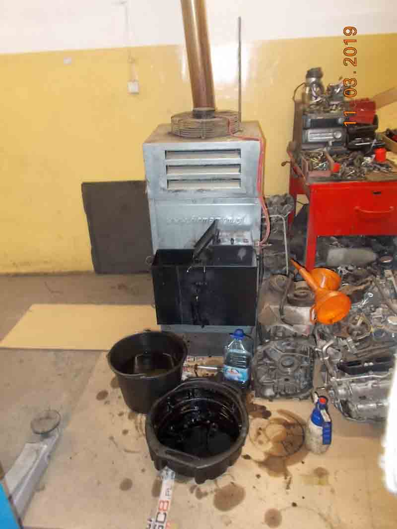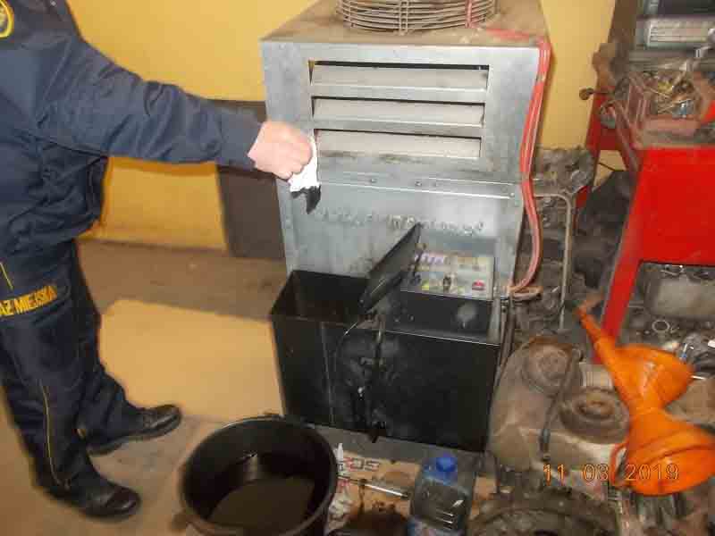 Czujność i nosy Ekopatrolu nie zawiodły i zawiodły prosto do sąsiedniego warsztatu samochodowego. Już na placu warsztatowym strażnicy odkryli śmieci komunalne zmieszane z niebezpiecznymi odpadami, na dodatek składowane sprzecznie z przepisami. Wewnątrz warsztatu znaleziono piec zasilany zużytym olejem, który jednoznacznie został zakwalifikowany do kategorii „truciciel”.
