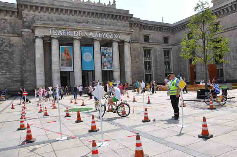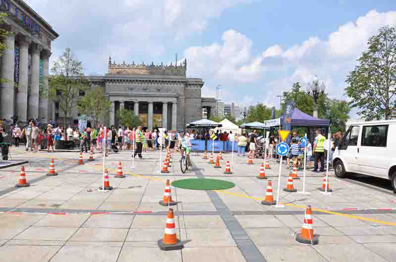 W sobotę 22 lipca br. warszawiacy obchodzili 62. rocznicę oddania do użytku Pałacu Kultury i Nauki. Z tej okazji organizatorzy obchodów przygotowali przed głównym wejściem do budynku festyn rodzinny z różnymi atrakcjami. Jedną z nich było mobilne Miasteczko Ruchu Drogowego wystawione przez strażników miejskich z Referatu Profilaktyki Straży Miejskiej m. st. Warszawy. Najmłodsi warszawiacy mogli na nim sprawdzić wiedzę oraz umiejętności z zakresu przepisów ruchu drogowego i jazdy rowerem. Profilaktycy zapraszali też dzieci do konkursu sprawnościowego, zabawy w kolorowanki, rozwiązywania rebusów, krzyżówek oraz quizu wiedzy na temat bezpieczeństwa. Referat Promocji Straży Miejskiej m. st. Warszawy przygotował dla uczestników drobne upominki i materiały promocyjne. W trakcie imprezy można też było zobaczyć pokaz udzielania pomocy przedmedycznej w wykonaniu ratownika medycznego, który jest funkcjonariuszem Straży Miejskiej m. st. Warszawy.