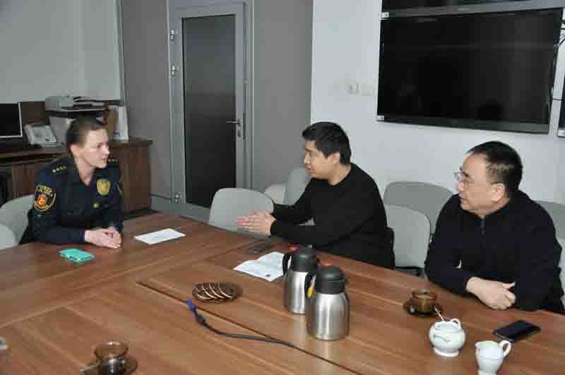 Goście, wśród których był zastępca Prezydenta Akademii Policyjnej, Yong Han wraz z Yu Chen i Jian Zhongiem z tej samej placówki oraz Shaojie Yao, Chenhua Su i Guangming Liu, dyrektorzy z Biura Bezpieczeństwa w Szanghaju, obejrzeli Centralne Stanowisko Kierowania straży oraz zapoznali się z zakresami obowiązków i organizacją pracy naszej jednostki. Mieli też wiele pytań dotyczących rozwiązań prawnych, regulujących pracę Straży Miejskiej oraz sposobów realizacji zgłoszeń i interwencji.