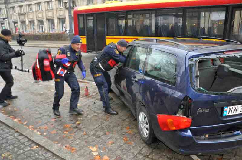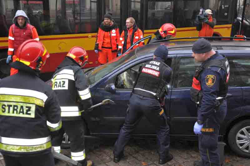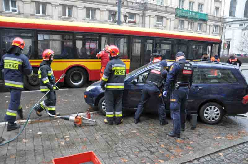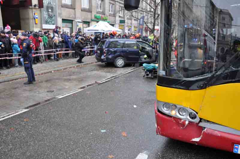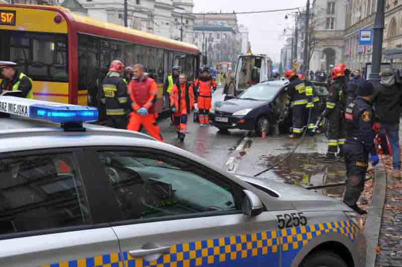 Wczesnym popołudniem pod kinem Luna na Marszałkowskiej autobus zderzył się z samochodem osobowym, czemu przyglądali się licznie zgromadzeni warszawiacy. Na miejscu pojawili się natychmiast strażnicy miejscy, którzy zabezpieczyli miejsce wypadku, udzielili pomocy poszkodowanym i wspierali pozostałe służby ratunkowe podczas akcji.