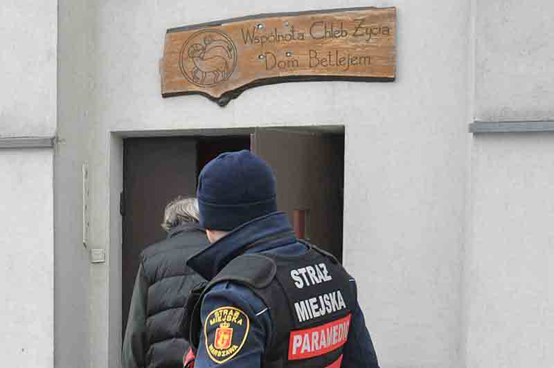 Na początek mężczyzna dostaje kubek gorącej herbaty. Ręce tak mu się trzęsą z zimna, że trochę ciepłego płynu rozlewa. Strażnicy ratownicy medyczni robią mu podstawowe badania. Podniesione ciśnienie, wysoki puls, kaszel i katar – organizm walczy z silnym przeziębieniem. Alfred Paplak dzwoni by dowiedzieć się w jakim schronisku znalazłoby się miejsce dla mężczyzny. Dom Betlejem przy ul. Gniewkowskiej ma już nadkomplet pensjonariuszy, ale zgadza się przyjąć jeszcze jednego. Po bezdomnego przyjeżdża radiowóz przystosowany do przewozu osób. Pół godziny później wyziębiony mężczyzna wchodzi do schroniska.