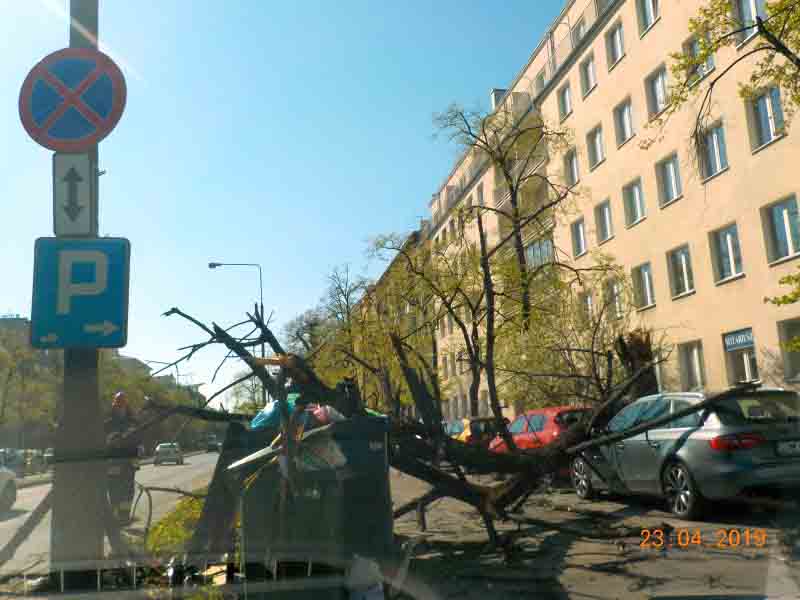 Wczoraj około godziny dziesiątej patrol straży miejskiej z II Oddziału Terenowego otrzymał zlecenie udania się w Aleje Niepodległości. Treść zlecenia: „leżący konar uszkodził dwa pojazdy”. Po przybyciu na miejsce funkcjonariusze potwierdzili posiadane informację: dwa samochody zostały uszkodzone przez oderwany konar drzewa. Na miejsce wezwano straż pożarną, która zabezpieczyła leżący konar. Ustalono też właścicieli uszkodzonych pojazdów.