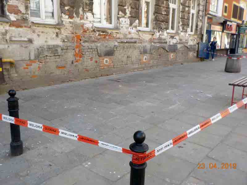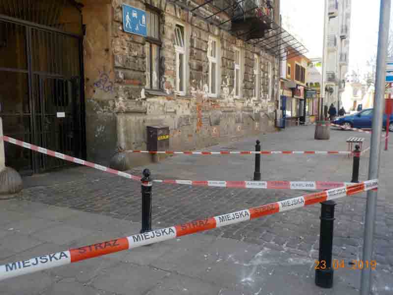 Porywisty wiatr dał się też we znaki mieszkańcom Pragi Północ. Przy ulicy Jagiellońskiej 9, tuż przy przystanku autobusowym wiatr zerwał fragmenty elewacji budynku, które – na szczęście nikogo nie raniąc- upadły na chodnik. Funkcjonariusze z VI Oddziału Terenowego zabezpieczyli miejsce zdarzenia.