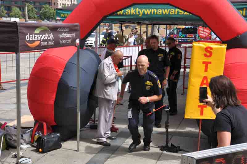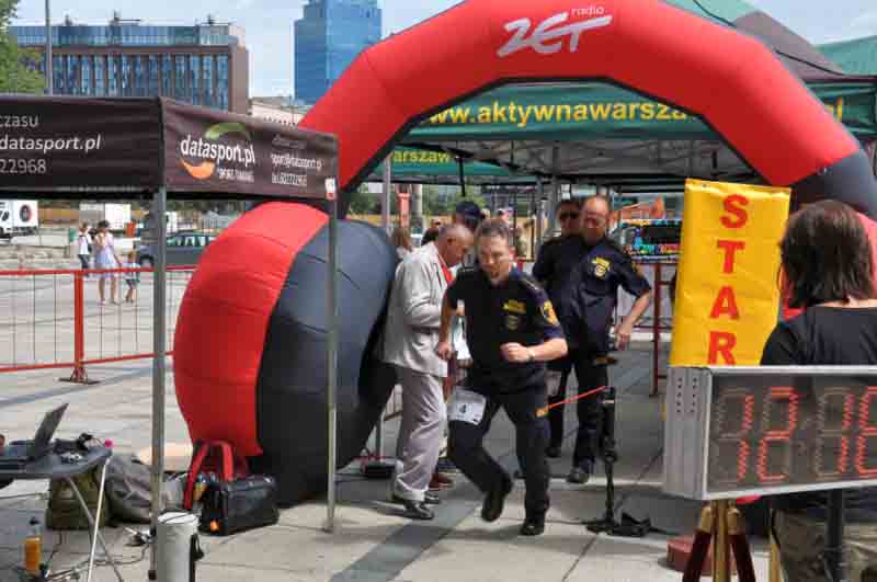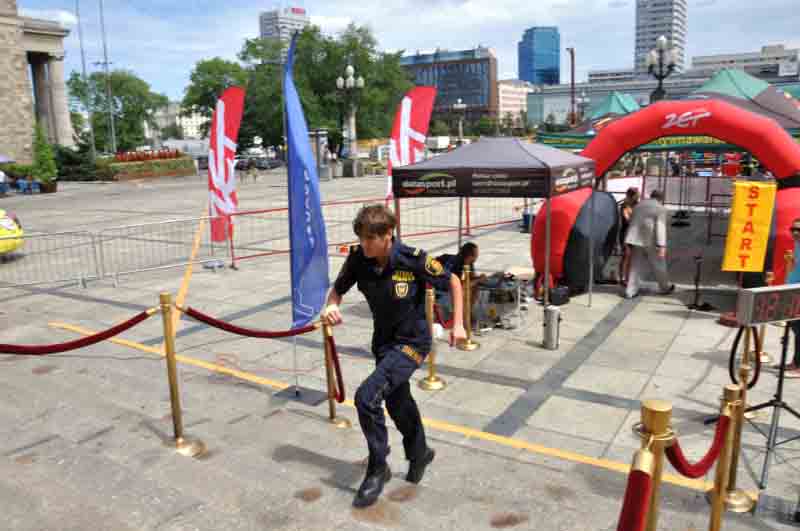 Pokonać krętą drogę na sam szczyt - 30 pięter, niemal 800 stopni o różnej wysokości - w jak najkrótszym czasie i stanąć na tarasie widokowym Pałacu Kultury i Nauki zostawiając współzawodników daleko w tyle. Trudne zadanie mieli do wykonania śmiałkowie, którzy zdecydowali się wziąć udział w V Biegu Tyma o puchar Prezydenta m.st. Warszawy. Zawodnikom, jak co roku, kibicował sam Stanisław Tym. Również jak co roku w imprezie sportowej udział wzięła reprezentacja warszawskich strażników miejskich. Choć upał dodatkowo utrudniał mozolny bieg na 30. piętro, to nasi strażnicy zajęli drugie miejsce!