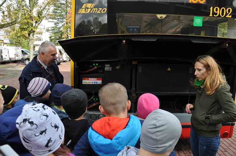 Warsztaty odbyły się 18 września w ramach tegorocznego Europejskiego Tygodnia Zrównoważonego Transportu i promocji szeroko pojętej mobilności, bezpieczeństwa w podróży i odpowiednich postaw społecznych pasażerów. Zajęcia składały się z trzech etapów: warsztaty teoretyczne prowadzone przez pracowników ZTM, zajęcia praktyczne pod nadzorem instruktorów ze straży miejskiej oraz poznawanie zasady działania autobusu miejskiego z napędem elektrycznym. Dzieci uczyły się o ekologicznych środkach transportu publicznego także bezpiecznego korzystania z komunikacji miejskiej. Emocje wzbudziło poznawanie zasady działania w pełni elektrycznego autobusu. Wielką frajdę sprawiła jazda na rowerach, po wygodnych, bezpiecznych i dobrze oznakowanych uliczkach Miasteczka Ruchu Drogowego straży miejskiej. Dzieci mogły się poczuć jak na prawdziwej drodze. Uśmiechy na twarzach dzieci były nagrodą dla organizatorów tej wspaniałej zabawy i nauki.