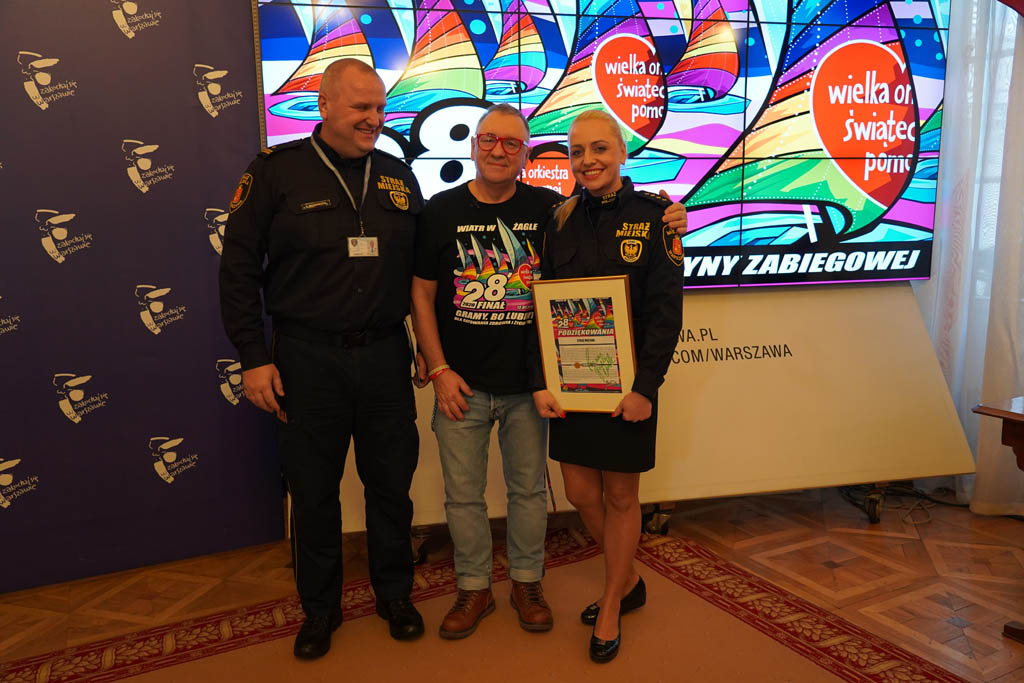 Podczas kameralnej uroczystości, z udziałem Prezydenta Miasta Rafała Trzaskowskiego i kapelmistrza Orkiestry Jurka Owsiaka, nagrody odbierały instytucje i agendy miejskie zaangażowane w organizację tegorocznego finału. Zastępca komendanta Zbigniew Włodarczyk wraz z Naczelnik Wydziału Promocji i Komunikacji Społecznej Joanną Maroszyńską odebrali dyplom w imieniu Straży Miejskiej m.st. Warszawy.
