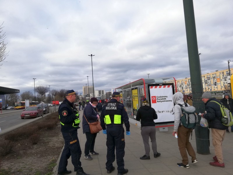 Kolejka, która tworzy się w okolicznościach pandemii, musi być monitorowana tak, aby osoby w niej stojące zachowywały miedzy sobą bezpieczną odległość. Nie wszyscy stojący w kolejce o tym pamiętają, dlatego obecność strażników, którzy pilnują porządku, jest niezbędna. Zadania funkcjonariuszy sprowadzają się w tym przypadku do obligowania stojących w kolejce osób do zachowania bezpiecznej odległości. Strażnicy informują jednocześnie o panującym zagrożeniu i konieczności dostosowania się do zasad bezpieczeństwa.