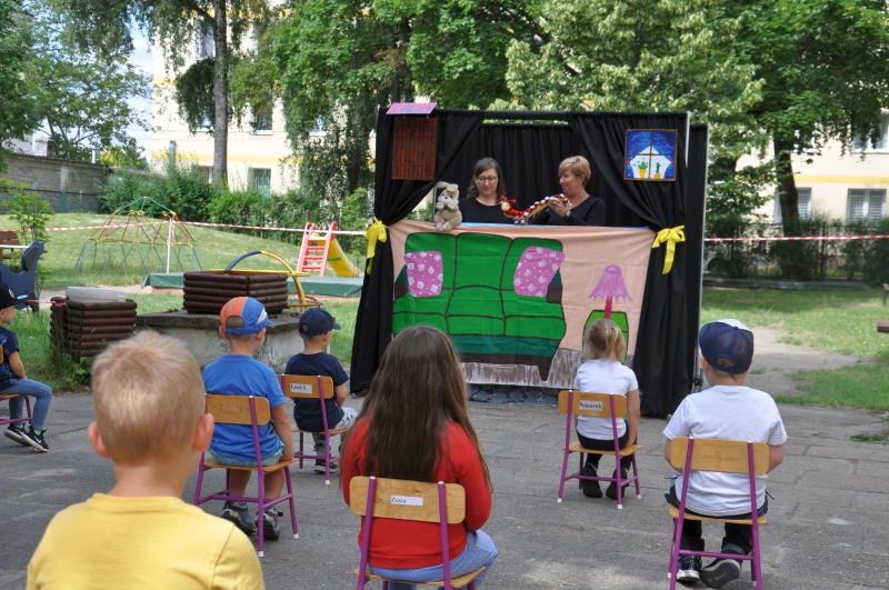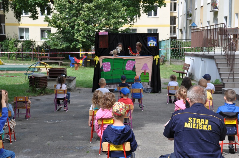 2020 07 premiera teatralna 01Zachwyt, zdziwienie, zainteresowanie, radość, zaciekawienie – to tylko niektóre z wielu emocji, które malowały się na buziach maluchów, które obejrzały dziś przygotowany przez funkcjonariuszy spektakl pod tytułem „Zając i stonoga – pełna przygód droga”. Nic dziwnego – Kocica Szelma, Zając Bruno, Stonoga Celina, Kangur Dżon i Strażnik Ryś zadbali nie tylko o najlepszą zabawę, lecz także o to, by przy tej okazji dzieci dowiedziały się, jak bezpiecznie zachować się na drodze i dlaczego nie należy ufać nieznajomym. Premierowe przedstawienie odbyło się w czwartek 9 lipca w jednym z praskich przedszkoli. Spektakl spotkał się z żywą reakcją najmłodszych widzów. Wszystko odbyło się w bezpiecznych warunkach – na otwartej przestrzeni i z zachowaniem bezpiecznej odległości.