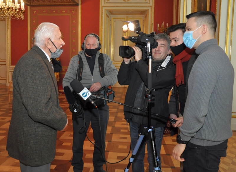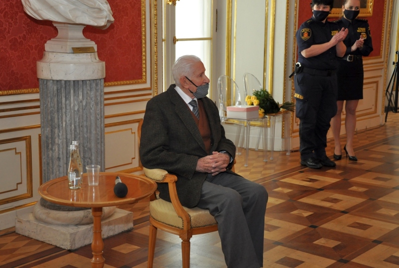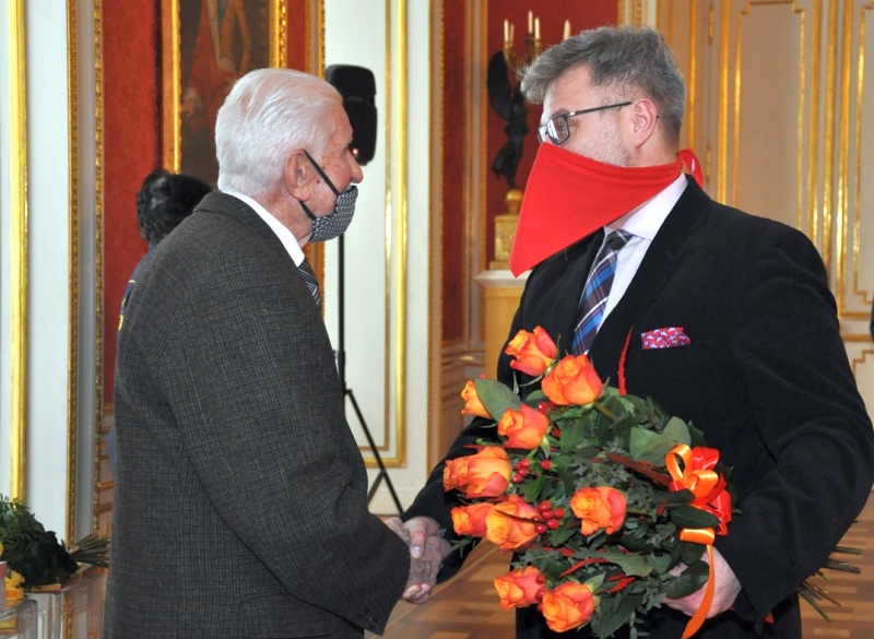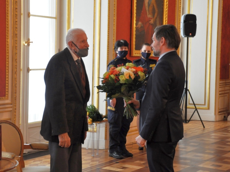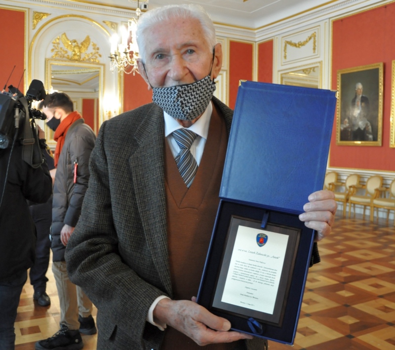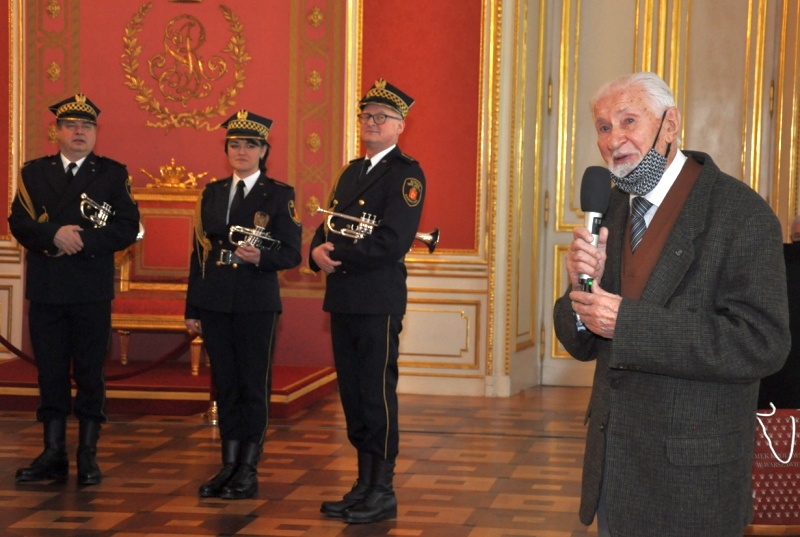 Profesor Żukowski w otoczeniu gości zaproszonych na uroczystościMało kto szczyci się takim życiorysem… Niekoniecznie złożonym z wydarzeń tylko pięknych i wzniosłych, lecz także – niezwykle trudnych i bolesnych. Straż Miejska m.st. Warszawy wraz z Zamkiem Królewskim w Warszawie uczciła dziś 92. rocznicę urodzin Pana prof. dra hab. Leszka Żukowskiego ps. „Antek” – Powstańca Warszawskiego, żołnierza Szarych Szeregów i Armii Krajowej, więźnia obozów koncentracyjnych.
