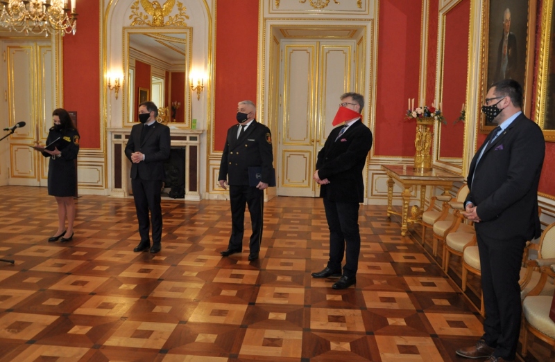 Uroczystość zorganizowana była – w reżimie sanitarnym – przez Straż Miejską m.st. Warszawy przy współudziale Zamku Królewskiego w Warszawie i odbyła się w czwartek 11 lutego o godzinie 13.00 w Zamku Królewskim. Wzięli w niej udział m.in. prof. dr hab. Wojciech Fałkowski – Dyrektor Zamku Królewskiego w Warszawie, Marcin Wojdat – Sekretarz m.st. Warszawy, Pan Rafał Miastowski – Burmistrz Dzielnicy Mokotów, Zbigniew Leszczyński – Komendant Straży Miejskiej m.st. Warszawy.