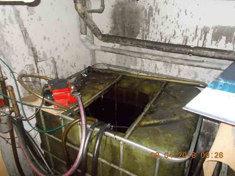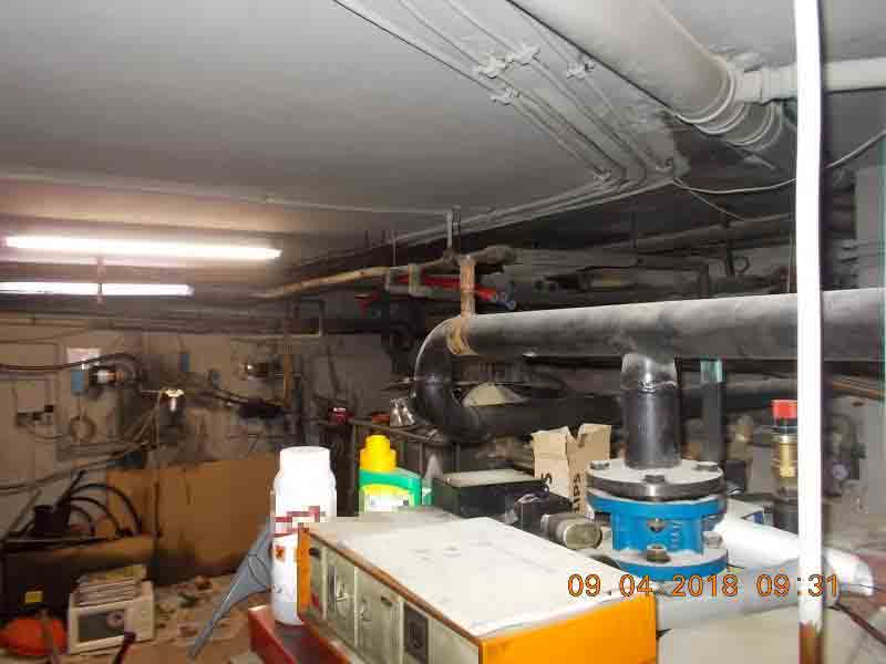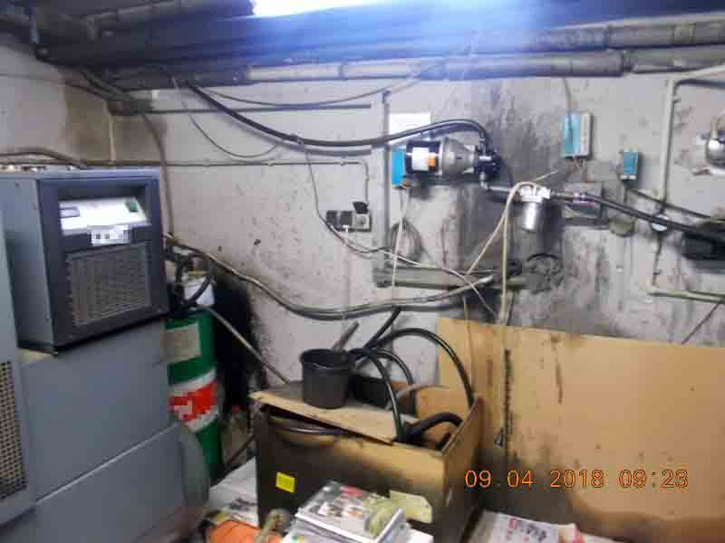 Uwagę strażników zwrócił również kocioł grzewczy usadowiony nad bramą wjazdową do hali serwisowej z systemem nawiewów - był to charakterystyczny kocioł, którego źródłem zasilania jest olej. Nie miał on zbiornika z opałem, a że budynek oraz hala o takiej kubaturze nie mogła być ogrzewana przy pomocy tylko tego jednego pieca, strażnicy zaczęli dopytywać o ogrzewanie pomieszczeń. W jednej z piwnic znajdowały się kolejne dwa piece - w trakcie kontroli jeden z kotłów pracował. Znajdowały się tam również dwa pojemniki 1000L, nie zauważono za to zbiornika przeznaczonego na magazynowanie oleju opałowego. Uwagę kontrolerów zwrócił natomiast prowizoryczny system pomp, rurek i węży. Po dokładnym sprawdzeniu okazało się, że ów system stanowi instalację zasilającą do wszystkich trzech działających na terenie obiektu pieców grzewczych: zużyty w warsztacie olej zlewany był do zbiornika posadowionego w gruncie, a następnie- w zależności od potrzeb- przepompowywany jest specjalnie przygotowanym łączem przez system rur przechodzącym przez fundament budynku do znajdujących się w kotłowni zbiorników. Instalacja ta, choć prowizoryczna, była przemyślanym systemem do przygotowania którego należało podjąć konkretne i celowe działania, a jego przygotowanie nie mogło się odbyć bez wiedzy właściciela obiektu.
