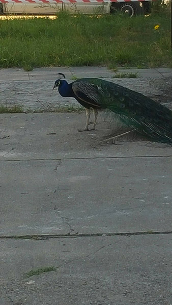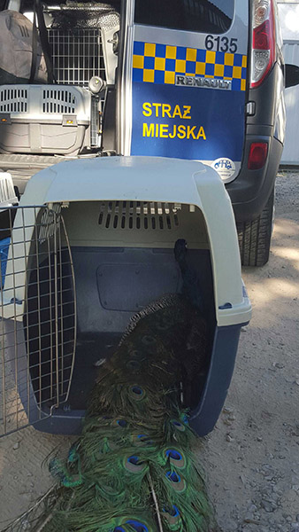 Czwartkowy poranek, początek służby, i od razu trafia się „kolorowe” zlecenie: Panowie, między blokami na ulicy Dragonów spaceruje… paw. Proszę, przyjedźcie. Strażnicy z Ekopatrolu ruszają na miejsce. Zgłoszenie zostaje potwierdzone: między zaparkowanymi samochodami dumnie i spokojnie spaceruje piękny, kolorowy paw. Nie jest to bezpieczne dla niego środowisko – funkcjonariusze nie bez trudu odławiają niesfornego ptaka.