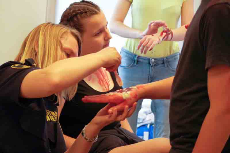 „POMAGAM – jestem bezpieczny, jestem skuteczny” prowadzony był po to, by nie tylko nauczyć młodzież udzielania pierwszej pomocy, ale przede wszystkim nauczyć opanowania w sytuacjach niosących zagrożenie. Prawidłowe odruchy, wpojone podczas zajęć teoretycznych i praktycznych pozwolą na odpowiednią reakcję w sytuacjach prawdziwego zagrożenia. Już w maju, podczas zajęć w szkole, uczestnicy warsztatów musieli reagować na nieprzewidziane sytuacje, jak choćby symulowany wybuch podczas akcji ratunkowej, który odciął oświetlenie i spowodował wzrost liczby rannych czy atak ze strony poszkodowanego podczas udzielania mu pomocy.
