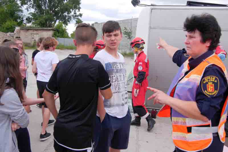 Straż Miejska współrealizowała program zarówno podczas zajęć teoretycznych – trwających od marca tego roku – aż po końcową inscenizację wypadku.