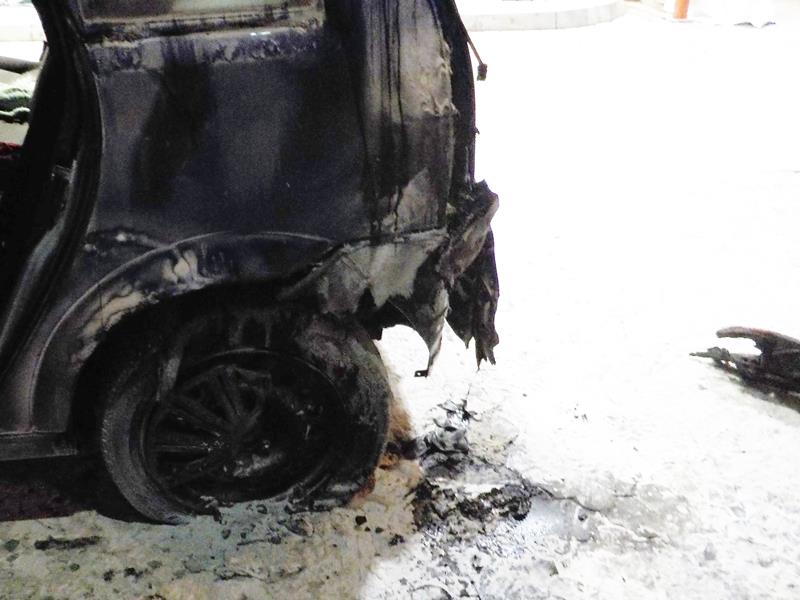 Po zużyciu jednej gaśnicy strażnicy zobaczyli wewnątrz auta iskrzące się i tlące przewody. Na szczęście na stacji była jeszcze jedna przemysłowa gaśnica. I również jej użyli funkcjonariusze przed przyjazdem straży. Gdy pożar został ugaszony, do funkcjonariuszy podeszło dwóch młodych mężczyzn, którzy od początku z uśmiechami przyglądali się całej akcji gaśniczej. Próbowali wypytywać funkcjonariuszy o przyczyny pożaru i szczegóły akcji, ale wydano im polecenie, by odeszli na bezpieczną odległość. Po chwili przyjechała straż pożarna i zajęła się zabezpieczeniem pojazdu, aby ponownie się nie zapalił. Patrol policji, który także przyjechał na miejsce, został poinformowany o dwóch dziwnie zachowujących się mężczyznach. Policjanci przejrzeli i zabezpieczyli monitoring na stacji. Obaj mężczyźni zostali zatrzymani. Kamery zarejestrowały ich obecność na stacji tuż przed pożarem. Podczas sprzątania po akcji ratowniczej na pobliskim trawniku znaleziono tablice rejestracyjne.