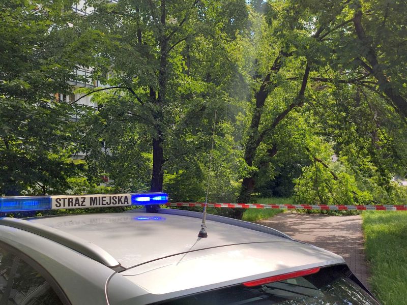 W piątek około dziesiątej do strażników z VI Oddziału Terenowego dotarło zawiadomienie z ulicy Jagiellońskiej o powalonym drzewie zagrażającym pieszym. „Drzewo” to może przesada, jednak pokaźny konar rzeczywiście mógł wyrządzić szkodę