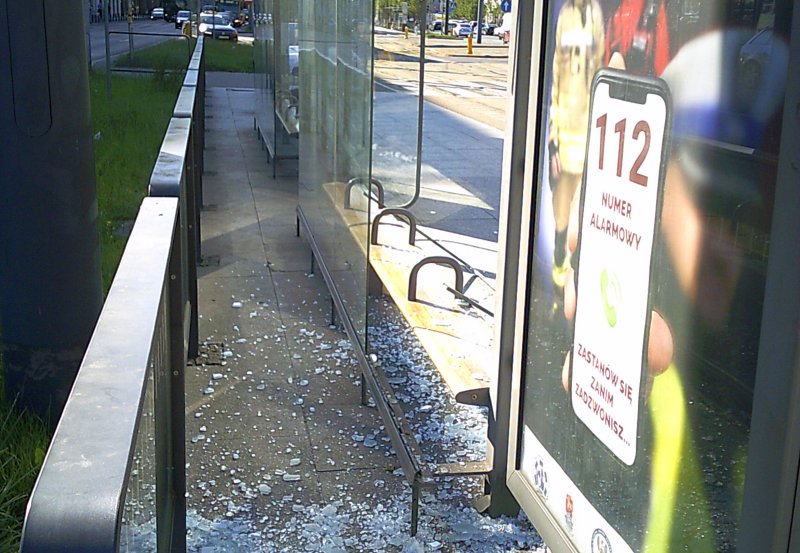 Kilka minut przed godziną 17 funkcjonariusze z VI Oddziału Terenowego, którzy dojeżdżali do przystanku u zbiegu Kijowskiej i Targowej zauważyli na nim mężczyznę, który nagle zachwiał się i z dużym impetem upadł na wiatę przystankową. W wyniku uderzenia w wiacie zbiły się dwie szyby, a mężczyzna upadł na rozsypane szkło. Strażnicy natychmiast ruszyli mu z pomocą. Poszkodowany oddychał, lecz nie było z nim kontaktu. W efekcie uderzenia rozbił sobie łokieć, który mocno krwawił. Liczne odłamki szkła poraniły mężczyźnie twarz. Funkcjonariusze wezwali karetkę pogotowia, a sami opatrzyli rannego. Gdy na chwilę odzyskał świadomość, ustalili, że jest 43-letnim mieszkańcem Pułtuska. Karetka zabrała go do szpitala. Rozbitą wiatę zabezpieczyli pracownicy nadzoru ruchu Tramwajów Warszawskich.