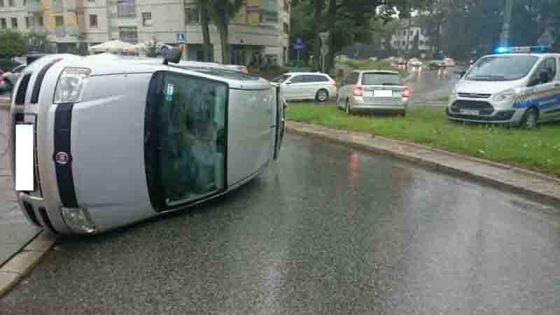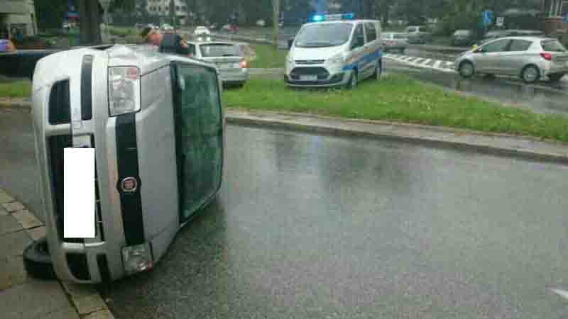 Według świadków, kobieta najechała na słupek odgradzający jezdnię od chodnika, co spowodowało przewrócenie samochodu.