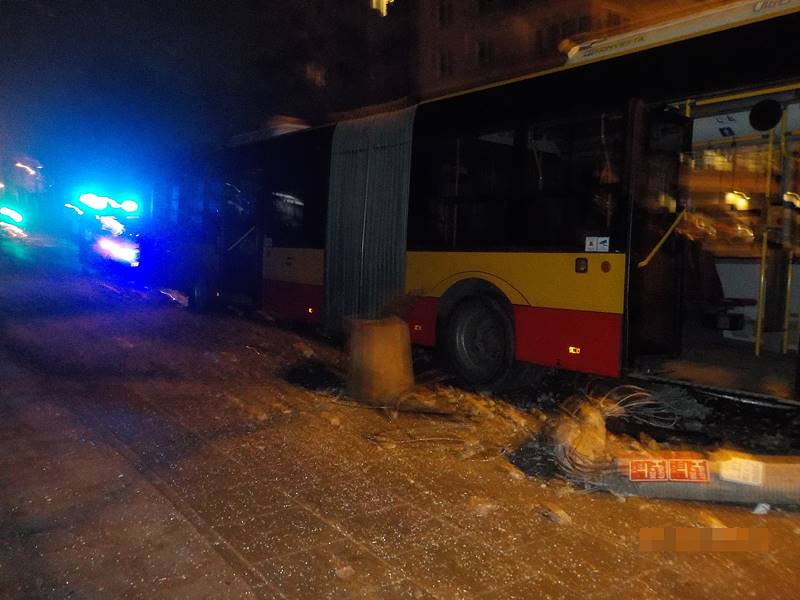 Autobus nocny staranował przystanek na Saskiej Kępie. W zdarzeniu ucierpiał jeden z pasażerów jadących autobusem. Pomocy przedmedycznej udzielili poszkodowanemu strażnicy miejscy.
