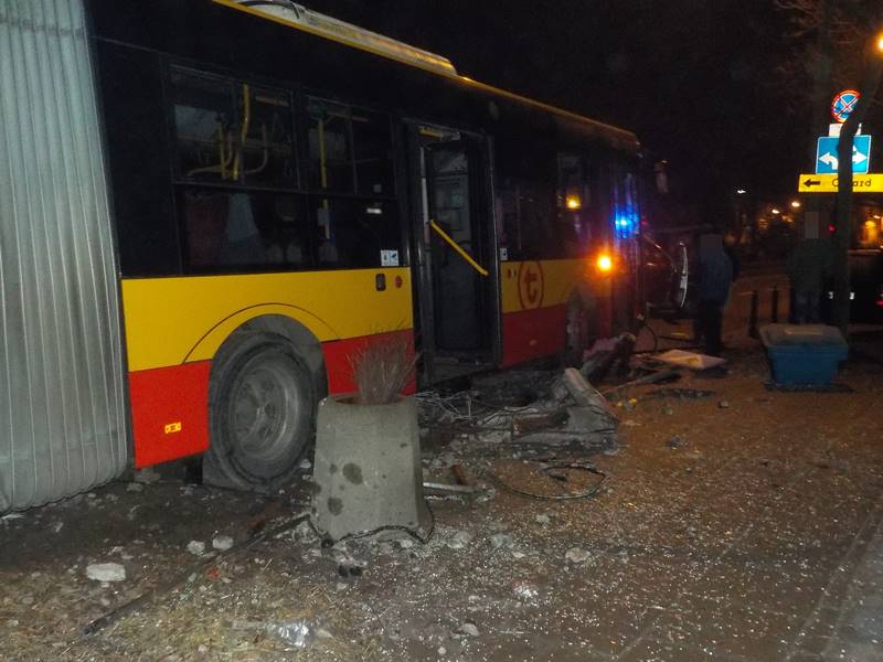 Strażnicy miejscy patrolujący 9 marca ok. godz. 4.30 Saską Kępę zobaczyli autobus miejski linii N22, który uderzył w przystanek u zbiegu ul. Saskiej i Meksykańskiej. Funkcjonariusze zabezpieczyli miejsce zdarzenia. W autobusie znajdował się kierowca i dwóch pasażerów. Jeden z nich miał rozbitą głowę. Strażnicy miejscy opatrzyli ranę i wezwali pogotowie ratunkowe i patrol policji. Drugi pasażer i kierowca nie wymagali pomocy. Kierowca autobusu był trzeźwy. Przyczyny wypadku wyjaśni policja.