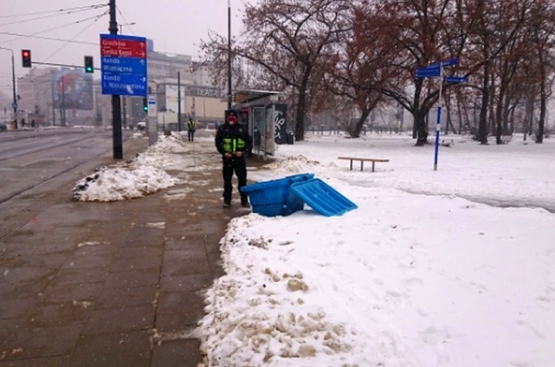 Miejsce to jest strażnikom znane, ponieważ często przebywają tam sprzedawcy nielegalnych papierosów. Widząc tak dziwne zachowanie, funkcjonariusze zatrzymali się i rozpoczęli kontrolę otoczenia przystanku. W pojemniku na piach do posypywania chodników ujawnili otwarty karton zawierający 6 paczek papierosów bez polskich znaków akcyzowych. Papierosy zabezpieczono i przekazano policji.