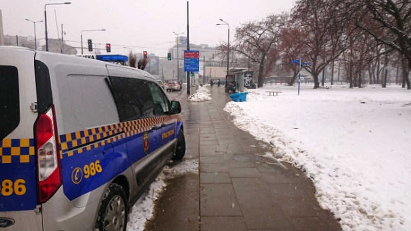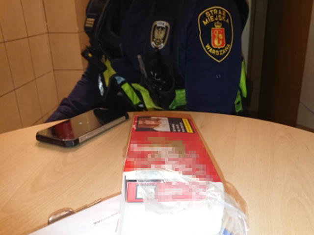 Strażnik wyjmuje papierosy ze skrzyni z piachemStrażnicy miejscy z VII Oddziału Terenowego, którzy około godziny 10 przejeżdżali ulicą Targową, zobaczyli przy Teatrze Powszechnym dziwnie zachowującego się mężczyznę. Na widok zbliżającego się radiowozu zaczął gwałtownie się oddalać z przystanku autobusowego, na którym czekał.