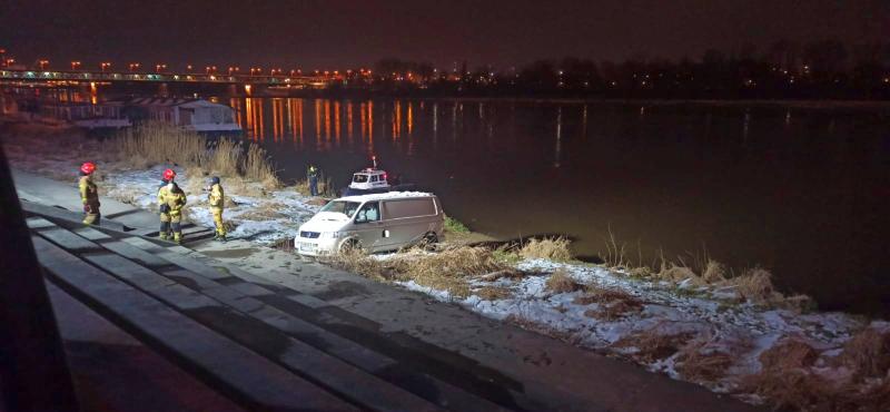 Około godziny 22.40 strażnicy miejscy otrzymali zgłoszenie, że nieopodal mostu Gdańskiego do Wisły wpadł samochód. Kilka minut później funkcjonariusze Oddziału Specjalistycznego odnaleźli białego volkswagena transportera w nurcie rzeki, kilka metrów od brzegu. Zdarzenie miało miejsce na wysokości ulicy Sanguszki. Funkcjonariusze zabezpieczyli teren oraz wezwali straż pożarną i patrol policji. Wyciągnięcie auta na brzeg zajęło strażakom niespełna godzinę. Pojazd miał zwolniony hamulec ręczny i zbitą boczną szybę. Jej liczne odłamki znaleziono przy słupkach blokujących wjazd z Wisłostrady na bulwary. Nie jest wykluczone, że ktoś celowo zepchnął auto do rzeki. Okoliczności zdarzenia wyjaśni policja.