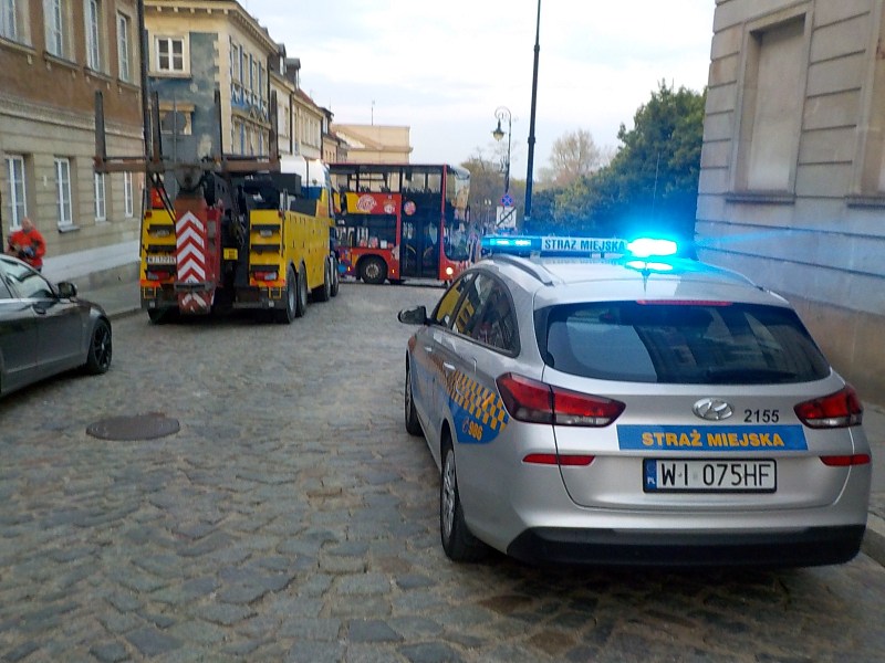 Na blisko 3 godziny turystyczny autobus zablokował skrzyżowanie na Nowym Mieście. Podczas skręcania z ul. Starej w Mostową pojazd zawisł na wysokim krawężniku. Strażnicy miejscy zabezpieczyli miejsce zdarzenia kierując kierowców na objazdy