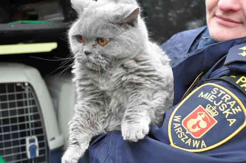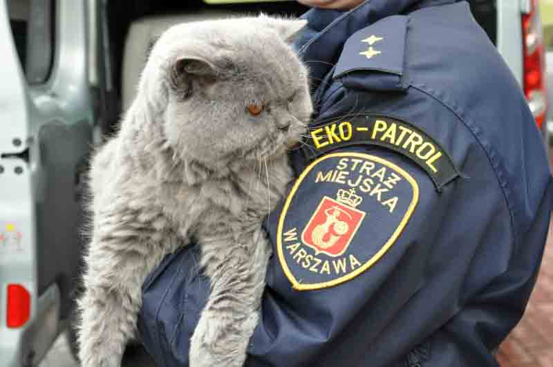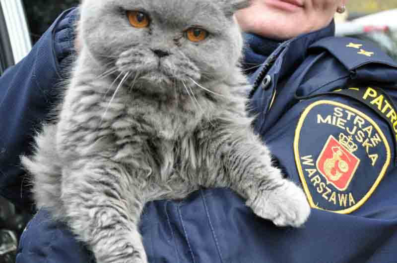 W sobotę 13 kwietnia około południa funkcjonariusze otrzymali zgłoszenie, które dotyczyło przebywającego na klatce schodowej jednego z bloków - bezpańskiego kota. Funkcjonariusze udali się na miejsce. Jedna z lokatorek bloku wskazała im samotnego i jak się okazało - rasowego kota. Był to brytyjski kot krótkowłosy. Nie wiadomo jak znalazł się w tym miejscu bez opieki. Mieszkańcy bloku stwierdzili, że nikt tu takiego kota nie posiada. Strażnicy sprawdzili, „brytyjczyk” był zaczipowany, niestety czip był niezarejestrowany i nie można było ustalić na tej podstawie właściciela. Gdy strażnicy podchodzili do zwierzęcia myśleli, że czeka ich pościg za czworonogiem. Na szczęście kot był przyjazny, grzecznie wszedł do pojemnika transportowego. Po sierści było widać, że długo nie był pielęgnowany, co wskazywało na to, że długo był na „gigancie”. Rasowiec bezpiecznie został odwieziony do schroniska na Paluchu z uwagi na swą urodę, na pewno szybko znajdzie nowego właściciela.