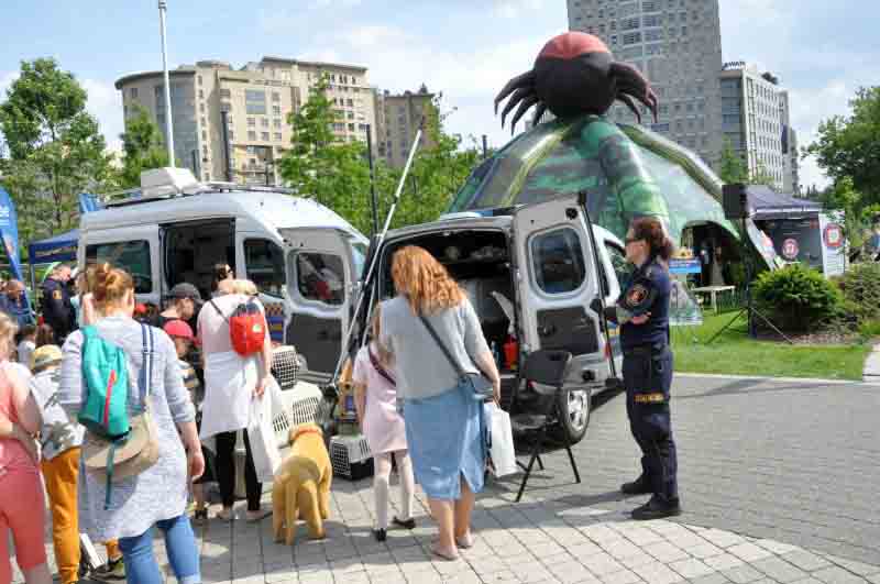 Najwięcej frajdy miały dzieci i młodzież. Pokonanie rowerowego toru przeszkód nie było łatwe, a odłowienie węża za pomocą specjalnego chwytaka i umieszczenie go w worku sprawiało wiele trudności, nawet dorośli mieli z tym problem. Byli też tacy, którzy chcieli posterować dronem, a ci którzy zmierzyli się z trudną sztuką resuscytacji mocno się zmęczyli ćwicząc masaż serca na fantomie. Były quizy i kolorowanki poświęcone bezpieczeństwu.