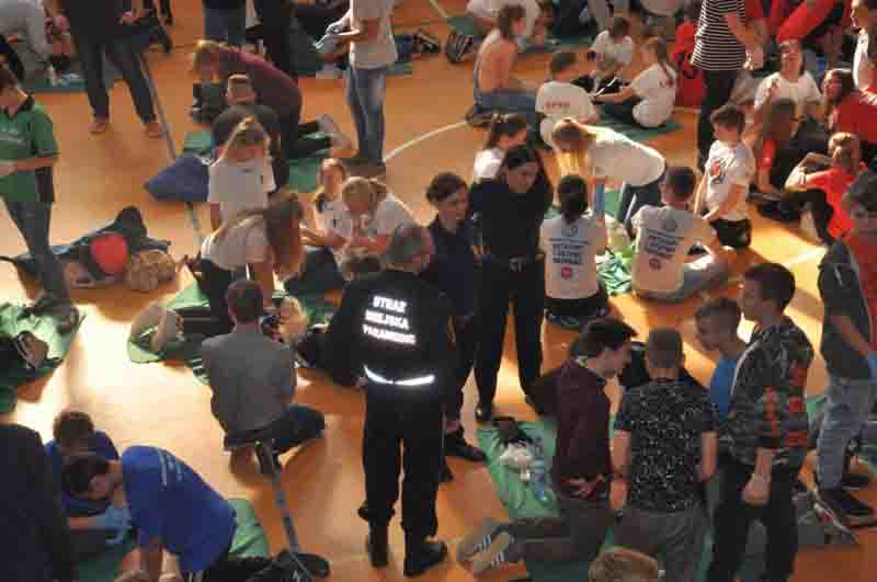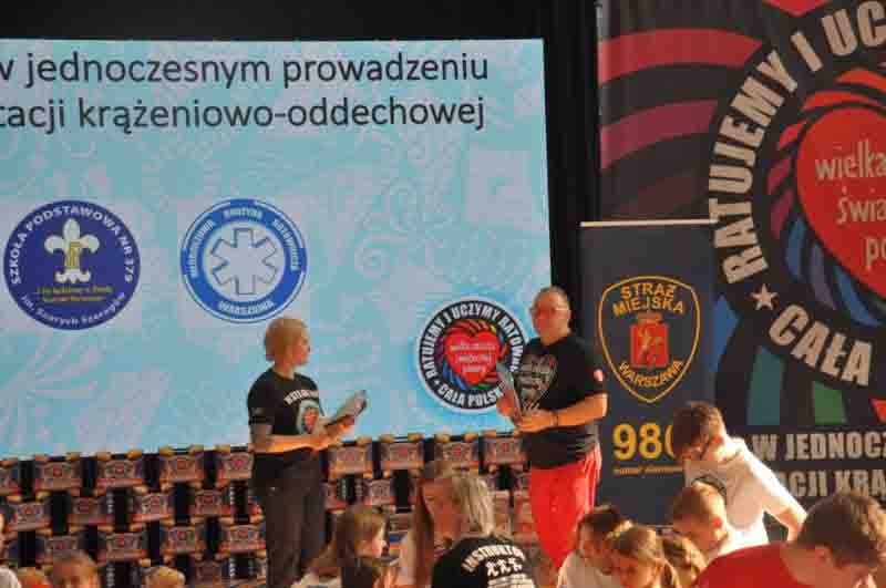 W całej Polsce rekord biło 85 tysięcy osób. Wśród nich, w Szkole Podstawowej nr 379 przy Turmonckiej na Targówku byli także funkcjonariusze Straży Miejskiej m.st. Warszawy, którzy dostarczyli sprzęt niezbędny do próby, ale też brali czynny udział w akcji.