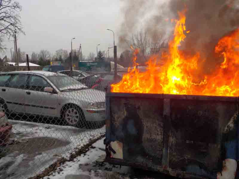 30 stycznia kilka minut po ósmej patrol straży miejskiej z VI Oddziału Terenowego zauważył kłęby czarnego dymu unoszące się na wysokość kilkunastu metrów. Strażnicy niezwłocznie udali się na miejsce. Jak się okazało ogień trawił zawartość kontenera na odpady. Plastik, guma, tworzywa sztuczne i meble w błyskawicznym tempie ogarniał ogień. W pobliżu kontenera znajdowały się samochody oraz kanistry zawierające najprawdopodobniej łatwopalną ciecz. Funkcjonariusze odsunęli kanistry i przy użyciu dostępnych środków gaśniczych przystąpili do gaszenia pożaru, zapobiegając jego rozprzestrzenianiu się. Na miejsce wezwali straż pożarną, która ugasiła płonące śmieci. Patrol zabezpieczył teren zdarzenia. Z uwagi na podejrzenie świadomego podłożenia ognia powiadomił policję, która ustali przyczyny i okoliczności pożaru.