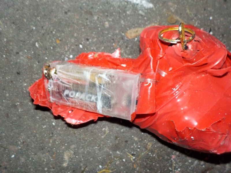 Pod wskazanym adresem zastali dozorcę, który wskazał teren gdzie znajduje się podejrzany pakunek. Przedmiot leżał we wnęce budynku – był to pakunek z wystającymi z jednej strony kablami oraz bateriami i elementami elektronicznymi. Z drugiej był wyposażony w kółko metalowe przypominające zawleczkę granatu. Funkcjonariuszka pilnie wezwała na miejsce policję oraz wspólnie z pracownicą ZOM przystąpiła do zabezpieczenia miejsca przed dostępem osób trzecich. Sprawę przekazano przybyłemu na miejsce mieszanemu patrolowi policji – policjant oraz funkcjonariusz Żandarmerii Wojskowej. Patrol saperski zabezpieczył podejrzany pakunek i zabrał go z miejsca zdarzenia.