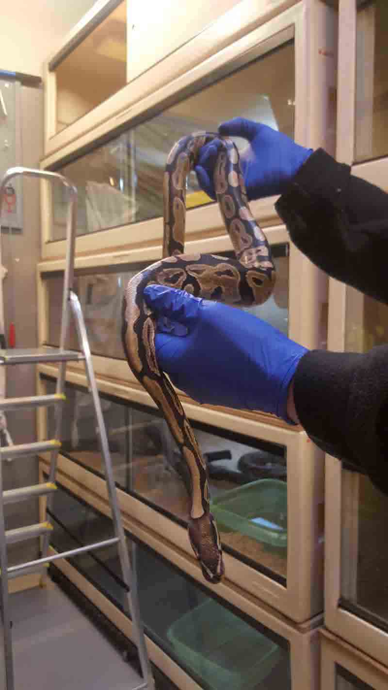 „Podczas prac remontowych w mieszkaniu na siódmym piętrze zauważyłem ukrywającego się pod wersalką węża. Trudno mi stwierdzić co to za gatunek, nie jest jednak agresywny i ma ok. 120 centymetrów” – zgłoszenie o takiej treści wpłynęło do straży miejskiej w poniedziałek ok. południa. Mężczyzna poprosił o interwencję funkcjonariuszy z Ekopatrolu. Kiedy strażnicy przyjechali na miejsce mężczyzna wskazał ukrywającego się pod kanapą węża – był to pyton królewski.