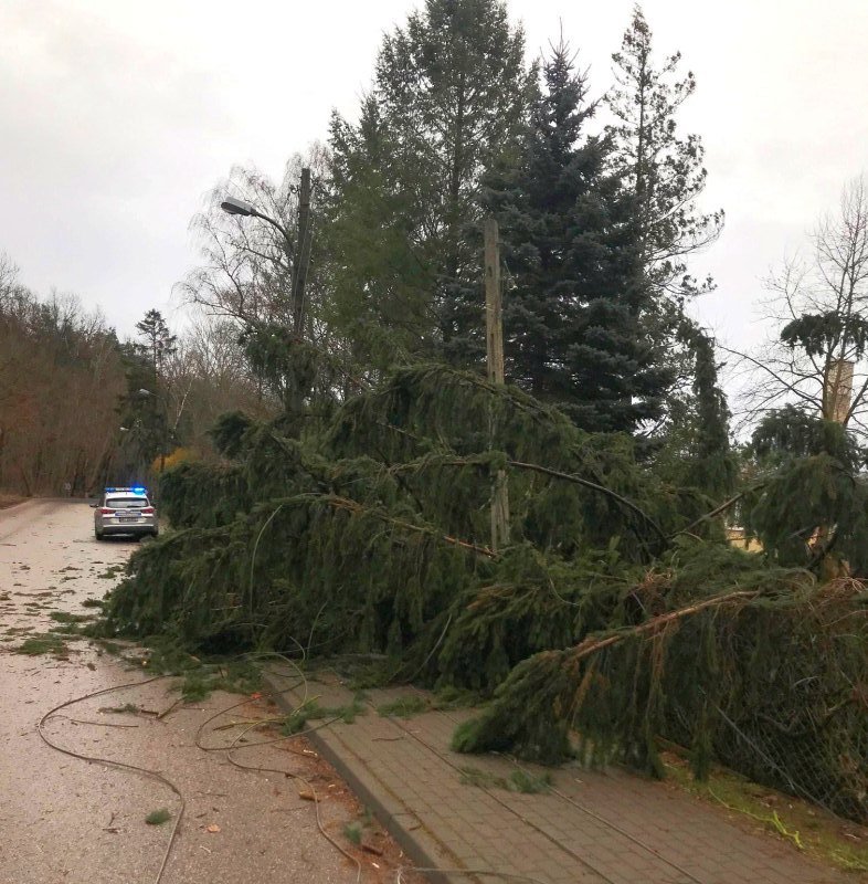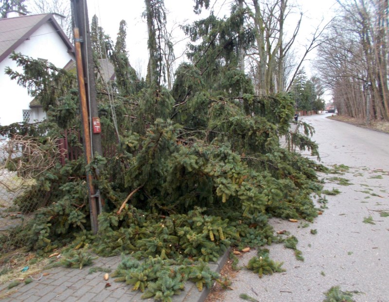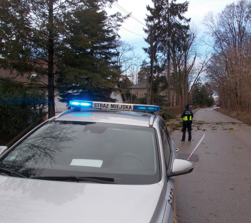 Około godziny dziewiątej rano strażniczki z Referatu ds. Kontroli Środowiska patrolowały ulicę Jagielską. W trakcie kontroli zauważyły powalone i połamane drzewa, które uszkodziły ogrodzenia kilku posesji, a co gorsza – zerwały też przewody telefoniczne i linię energetyczną rozpiętą na słupach stojących wzdłuż ulicy. Część przewodów leżała na jezdni lub zwisała nad chodnikiem. Strażniczki natychmiast zabezpieczyły niebezpieczne miejsce, by nie dopuścić tam osób postronnych oraz wezwały straż pożarną i pogotowie energetyczne. Funkcjonariuszki zabezpieczały teren do usunięcia zagrożenia.