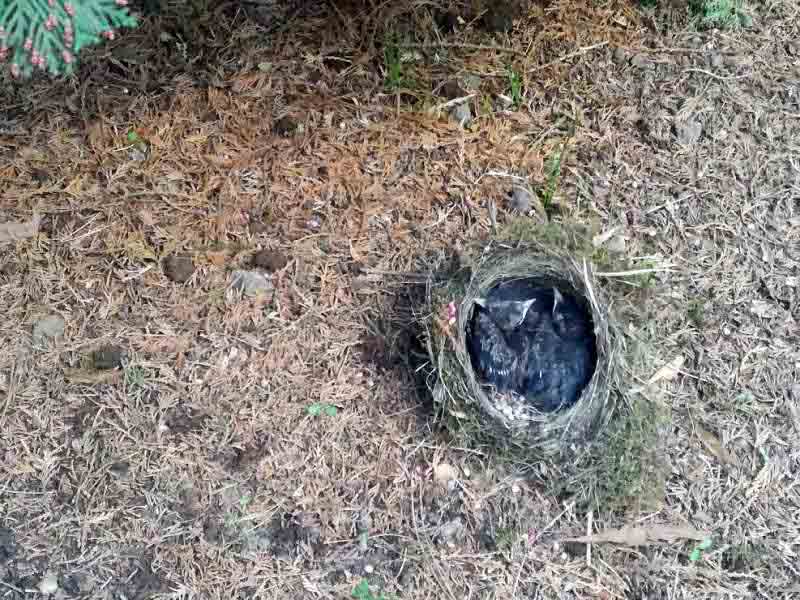Cały ich „dom” spadł na ziemię, na szczęście żadne z piskląt nie ucierpiało.