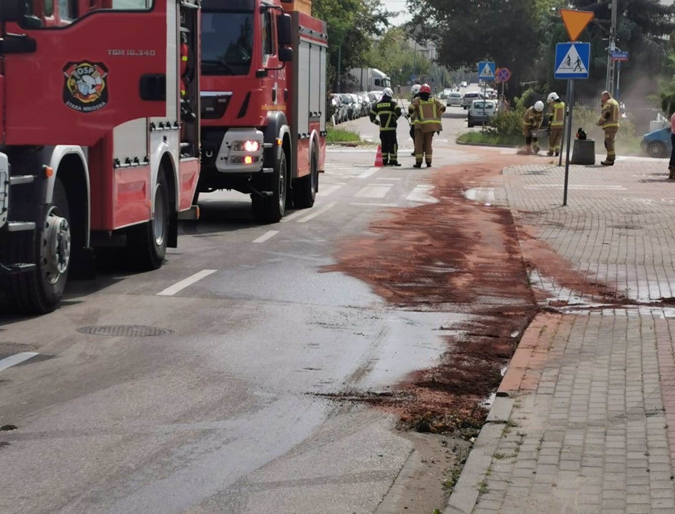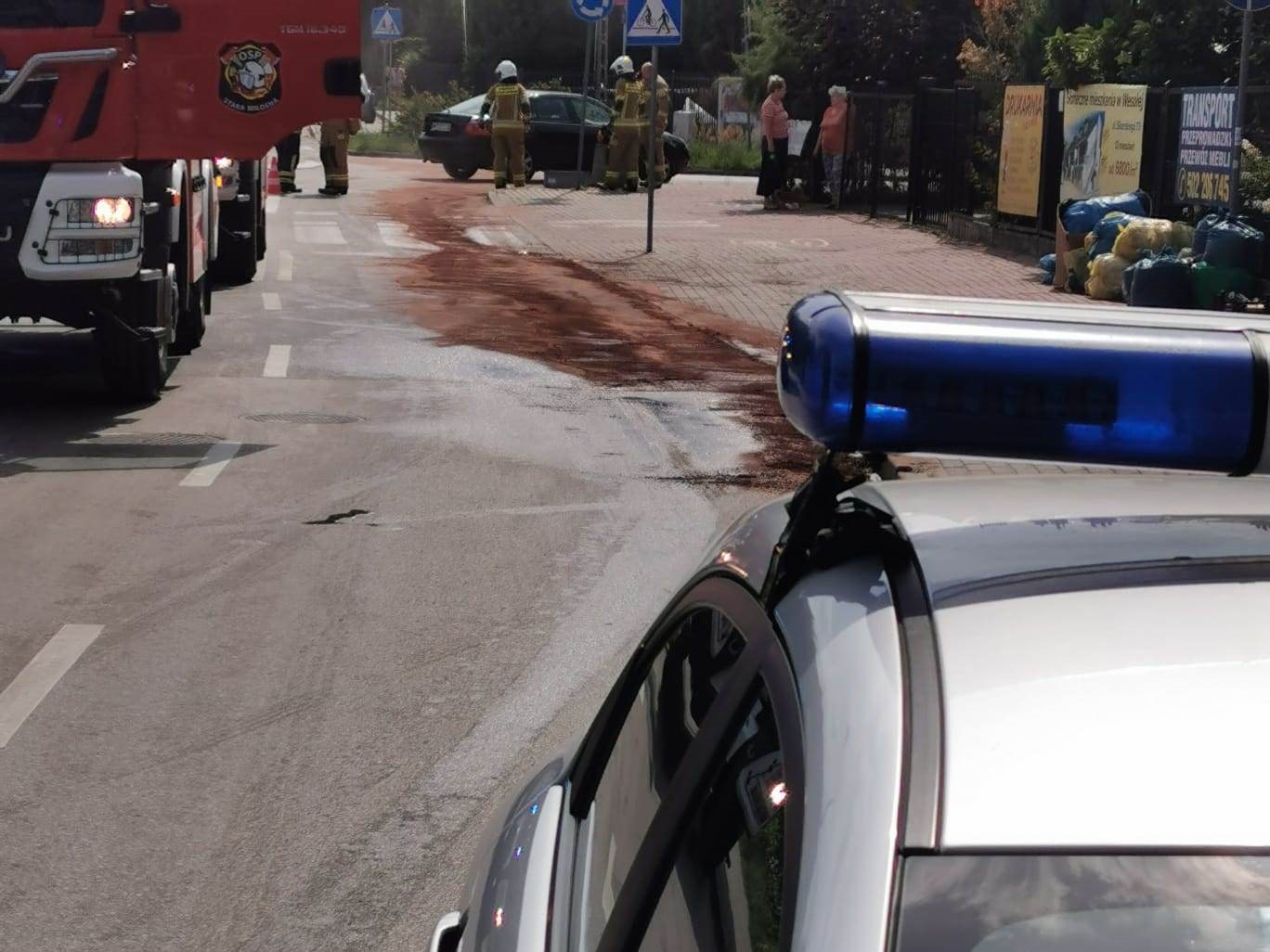 Hamujące przed skrzyżowaniem i przejściem dla pieszych samochody wpadały w poślizg – wielka plama oleju napędowego zablokowała wczesnym popołudniem 23 sierpnia jedno z głównych skrzyżowań w Starej Miłosnej