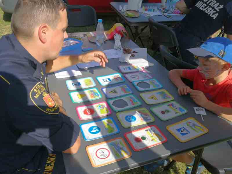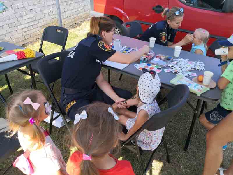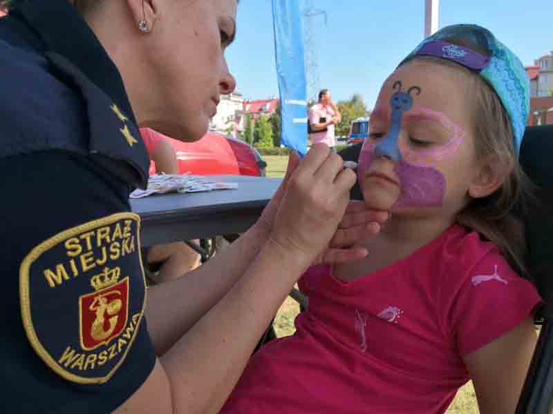 Tak było podczas imprezy, jaka odbyła się 24 sierpnia na boisku u zbiegu Fasolowej i Tynkarskiej we Włochach. Strażnicy na swoim stanowisku dbali, by młodzi uczestnicy nie tylko się nie nudzili, ale też podczas zabawy poznawali bezpieczne zachowania- zatem przy okazji malowania buzi można było sprawdzić swoją znajomość przepisów ruchu drogowego czy spróbować swoich sił w konkursach.