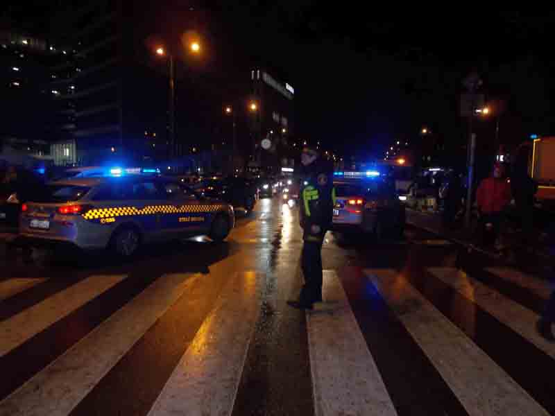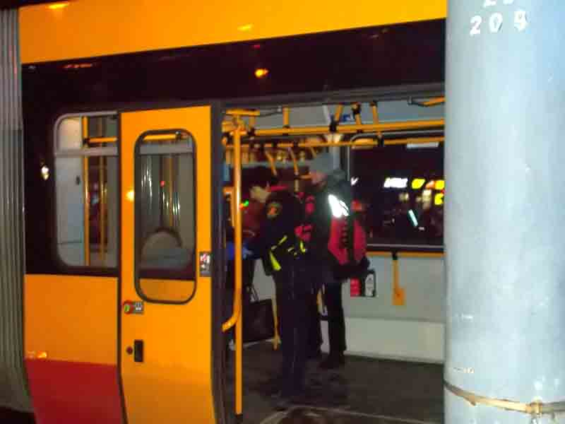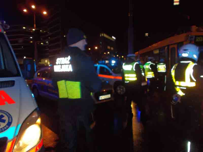 Strażnicy miejscy udzielali pomocy pasażerom w tramwaju linii 20. Poszkodowana kobieta doznała prawdopodobnie złamania nosa. W wyniku zderzenia inny pasażer wpadł na nią i uderzył ją silnie głową w twarz. Inna kobieta spadła z siedzenia uderzając silnie głową i ręką o podłogę. Kobieta miała objawy wstrząśnienia mózgu. Musiała szybko trafić do szpitala. Kolejna kobieta upadając uderzyła się silnie w głowę co spowodowało zawroty głowy i nudności. W tym wypadku też mogło dojść do wstrząśnienia mózgu.