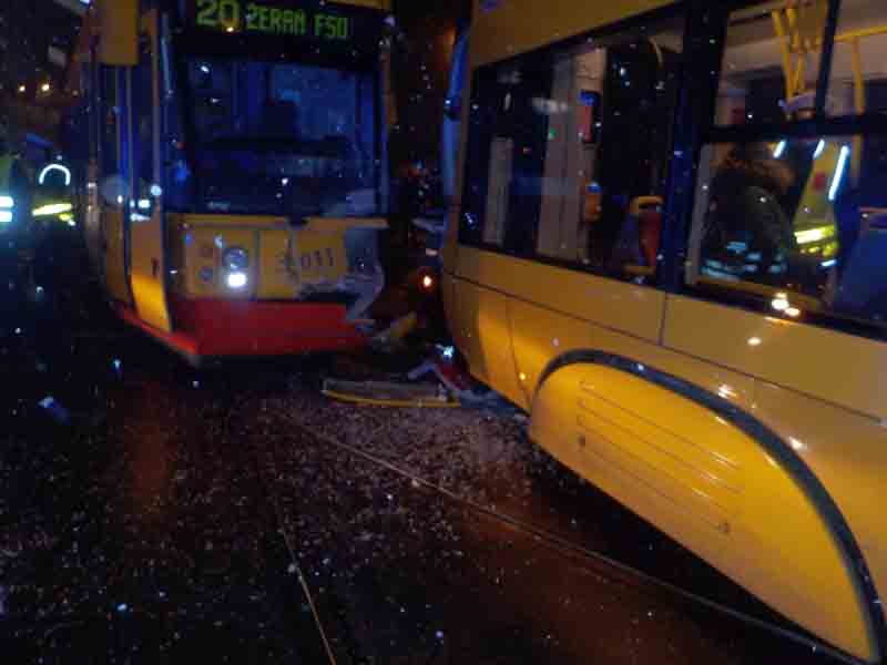 Strażnicy miejscy z VI Oddziału Terenowego 2 stycznia ok. godz. 16.15 jechali radiowozem z Woli na Pragę. Na skrzyżowaniu al. Solidarności, Okopowej i Towarowej funkcjonariusze zobaczyli stojące na środku skrzyżowania dwa tramwaje linii 10 i 20. Kabiny dwóch tramwajów były zniszczone w wyniku czołowego zderzenia.