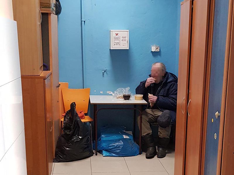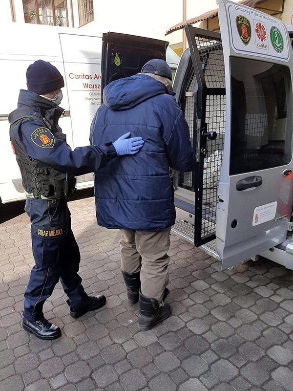 Tutaj tkwił kolejny problem. Od mężczyzny czuć było alkohol. Poza tym wymagał pilnej wizyty w łaźni. Zgodził się pojechać ze strażnikami do placówki Caritas przy ul. Żytniej. Tam wziął kąpiel. Dostał też czystą odzież, a na koniec otrzymał posiłek. Czynności te zajęły dostatecznie dużo czasu, by alkohol kompletnie z niego wyparował. Tuż przed godziną 15 funkcjonariusze przewieźli bezdomnego do placówki w Ursusie, gdzie został przyjęty do sali buforowej, w której spędzi najbliższe dwa tygodnie. Jeśli w tym czasie nie pojawią się u niego objawy zarażenia wirusem covid-19, to po zakończeniu kwarantanny personel placówki znajdzie mu wolne miejsce w schronisku.