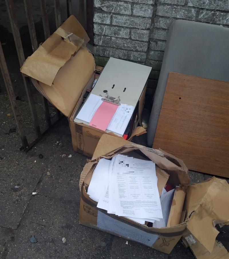 Rankiem 18 lutego strażnicy miejscy z IV Oddziału Terenowego otrzymali zgłoszenie o leżących przy altanie śmietnikowej dokumentach zawierających dane osobowe
