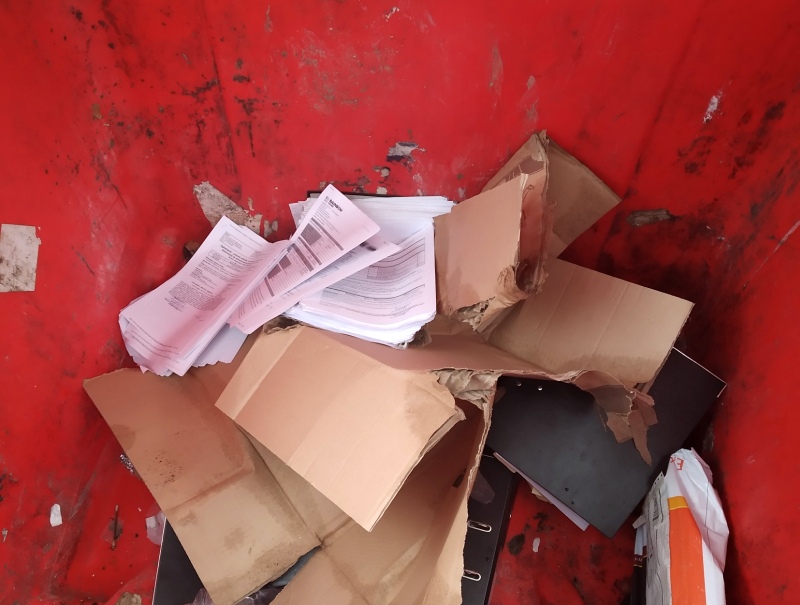 Dochodziła godzina ósma rano, gdy funkcjonariusze otrzymali zgłoszenie z jednej z posesji przy ulicy Młynarskiej. Dozorczyni sprzątająca teren odkryła tam przy altanie śmietnikowej kartonowe pudełka, w których znajdowały się dokumenty zawierające dane osobowe. Były wśród nich między innymi pisma z ZUS i dokumenty z biur podróży. Na nich oznaczono imiona, nazwiska, numery PESEL, adresy zamieszkania oraz numery paszportów. Strażnicy miejscy zabezpieczyli dokumenty i wezwali patrol policji. Dalsze czynności w tej sprawie będzie prowadziła policja.
