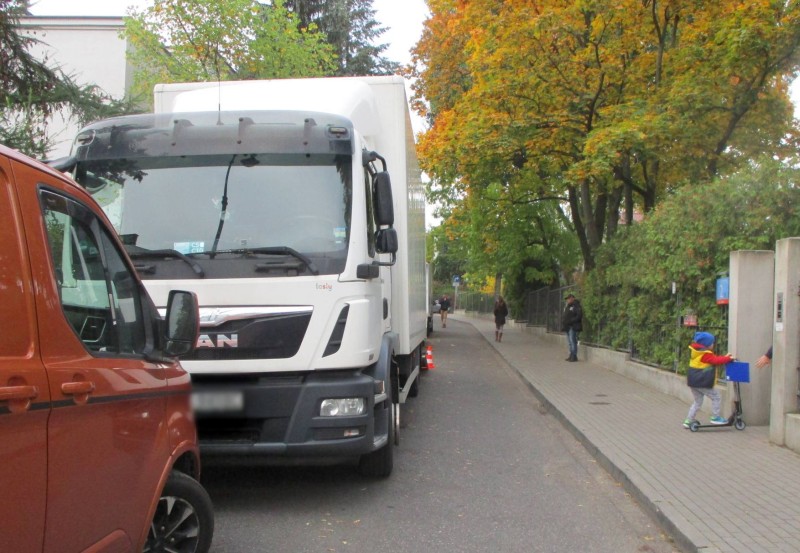 Na numer alarmowy 986 zadzwonili zdenerwowani rodzice dzieci ze żłobka przy ul. Rybińskiego. Przed samym wejściem do placówki, na wąskiej jezdni i przyległym chodniku zaparkowało kilka pojazdów ekipy filmowej. Wśród nich ciężarówka i samochód dostawczy, których pozostawienie zupełnie zatarasowało przejazd i przejście jedną stroną ulicy. By wejść na teren żłobka, odprowadzający dzieci rodzice zmuszeni byli przemykać między samochodami. Z kolei wychodzący - byli zupełnie niewidoczni dla nadjeżdżających. Tymczasem kierowcy obu zawalidróg – zniknęli.